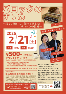 【出演】ハルモニア・レニス……リコーダー奏者:水内謙一/チェンバロ奏者:村上暁美